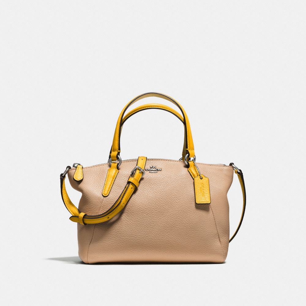 1. COACH f59853 - MINI KELSEY SATCHEL IN REFINED NATURAL PEBBLE LEATHER - SILVER/BEECHWOOD