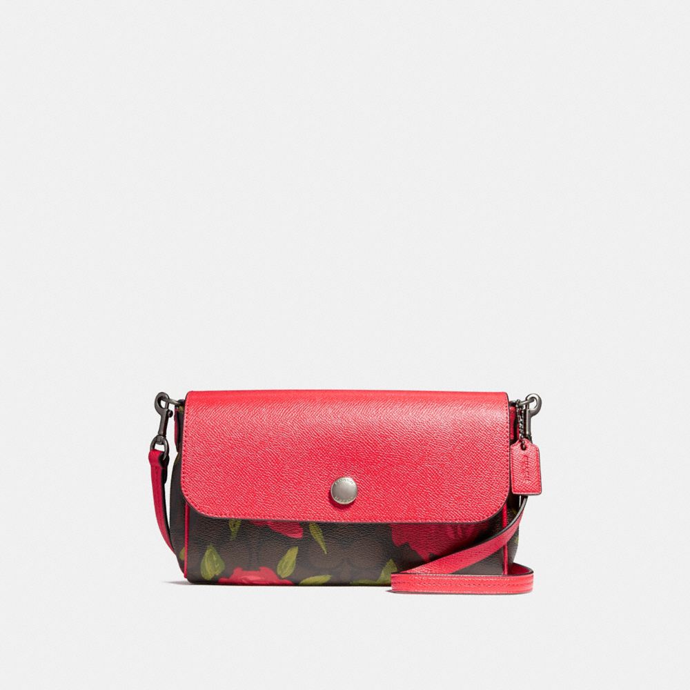 1. COACH f28188 - REVERSIBLE CROSSBODY WITH CAMO ROSE FLORAL PRINT - BLACK ANTIQUE NICKEL/BROWN RED MULTI