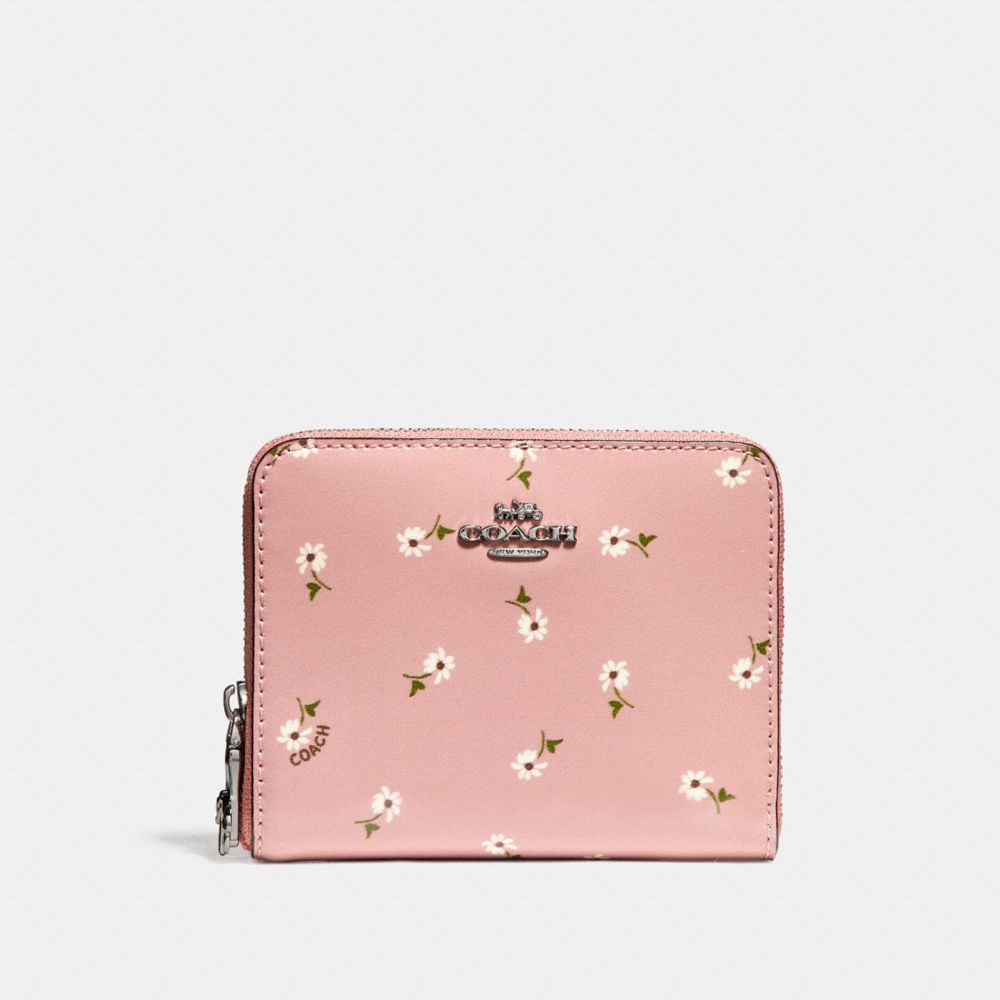 1. COACH f30184 - SMALL ZIP AROUND WALLET WITH DITSY DAISY PRINT - vintage pink multi /silver
