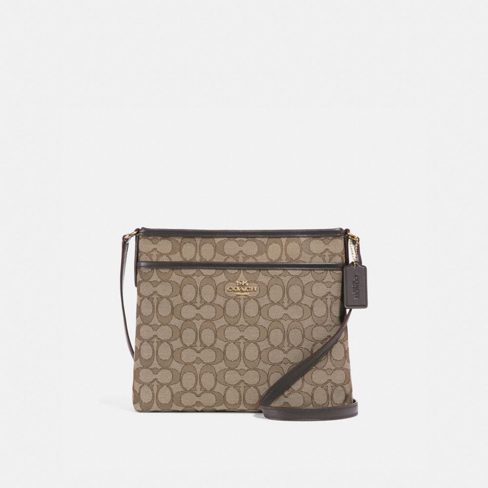 1. COACH f29960 - FILE CROSSBODY IN SIGNATURE JACQUARD - KHAKI/BROWN/IMITATION GOLD