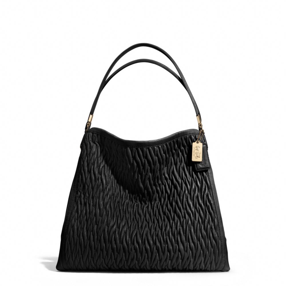 COACH F25627 MADISON LEATHER PHOEBE SHOULDER BAG -LIGHT-GOLD/BLACK HANDBAGS