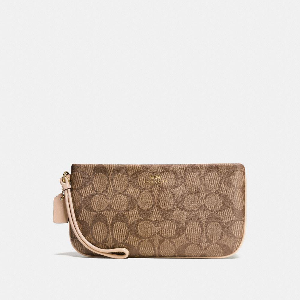 1. COACH f65748 - LARGE WRISTLET IN SIGNATURE - IMITATION GOLD/KHAKI PLATINUM
