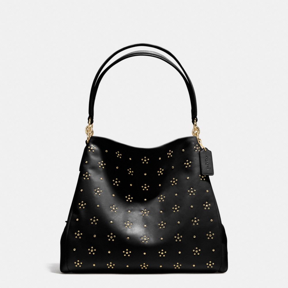 COACH F36590 ALL OVER STUD PHOEBE SHOULDER BAG IN CALF LEATHER IMITATION-GOLD/BLACK HANDBAGS