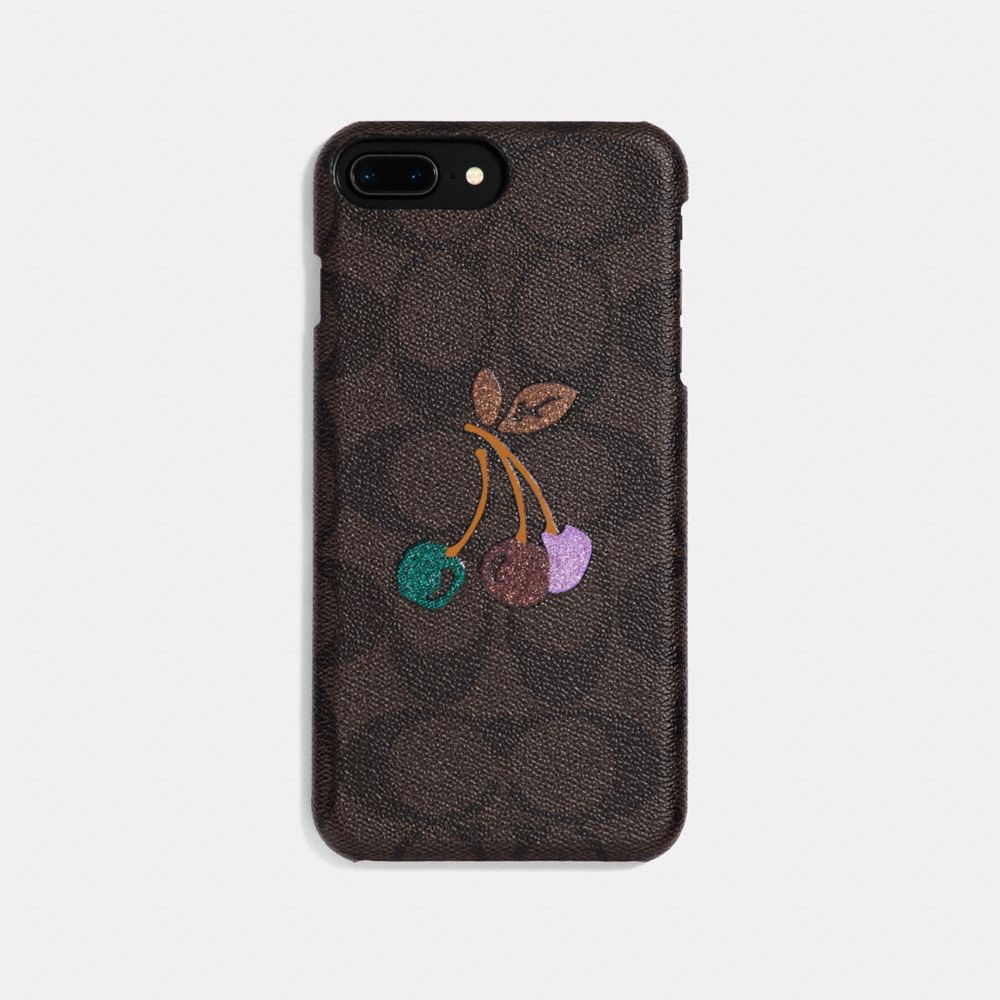 1. COACH f34726 - IPHONE 8 PLUS CASE IN SIGNATURE CANVAS WITH GLITTER CHERRY - Brown/Multi