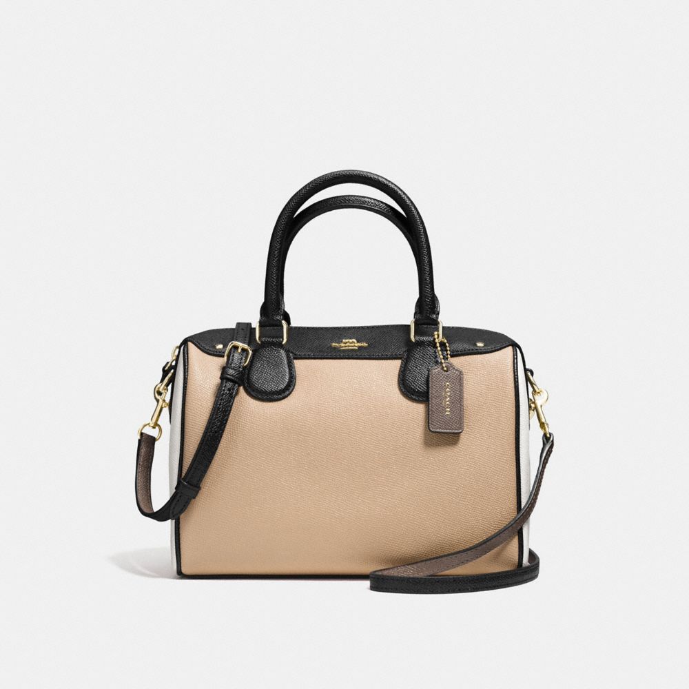 COACH F57498 MINI BENNETT SATCHEL IN GEOMETRIC COLORBLOCK CROSSGRAIN LEATHER IMITATION-GOLD/BEECHWOOD/CHALK-MULTI HANDBAGS
