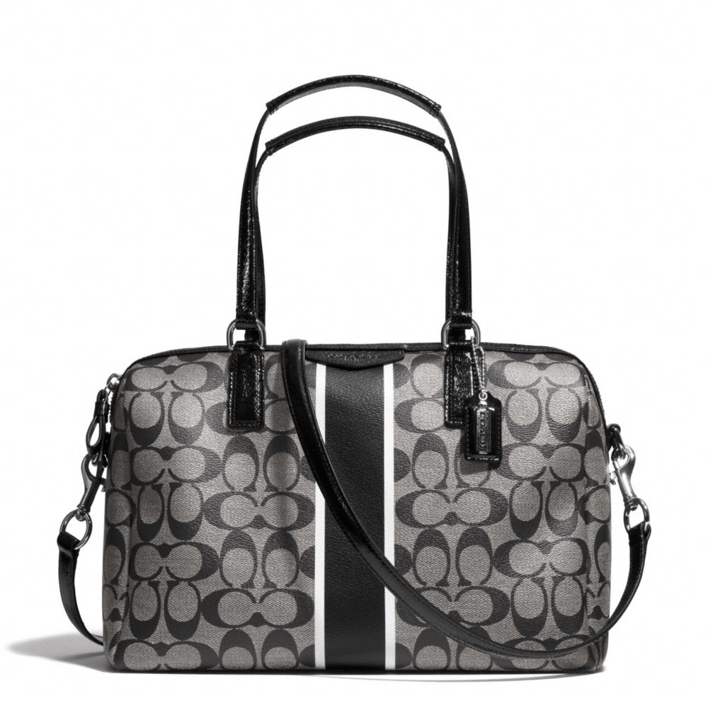 COACH F30662 - SIGNATURE STRIPE NANCY SATCHEL - SILVER/BLACK/WHITE/BLACK - HANDBAGS