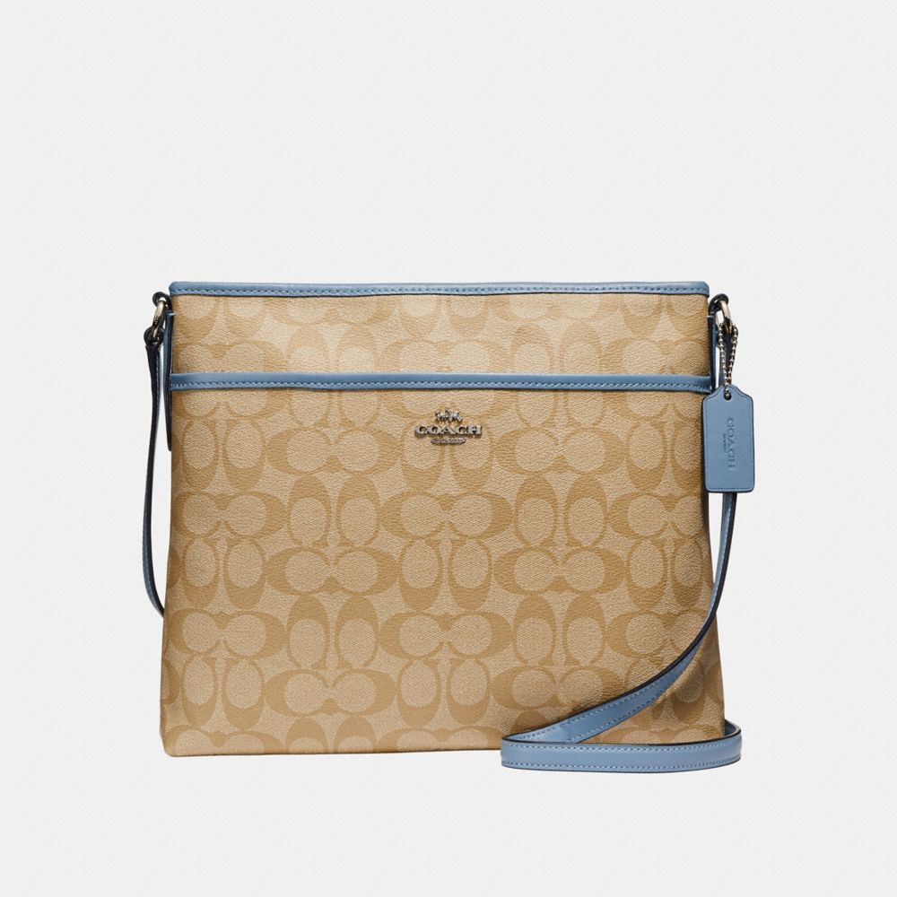 COACH F58297 FILE BAG IN SIGNATURE CANVAS LIGHT-KHAKI/POOL/SILVER HANDBAGS
