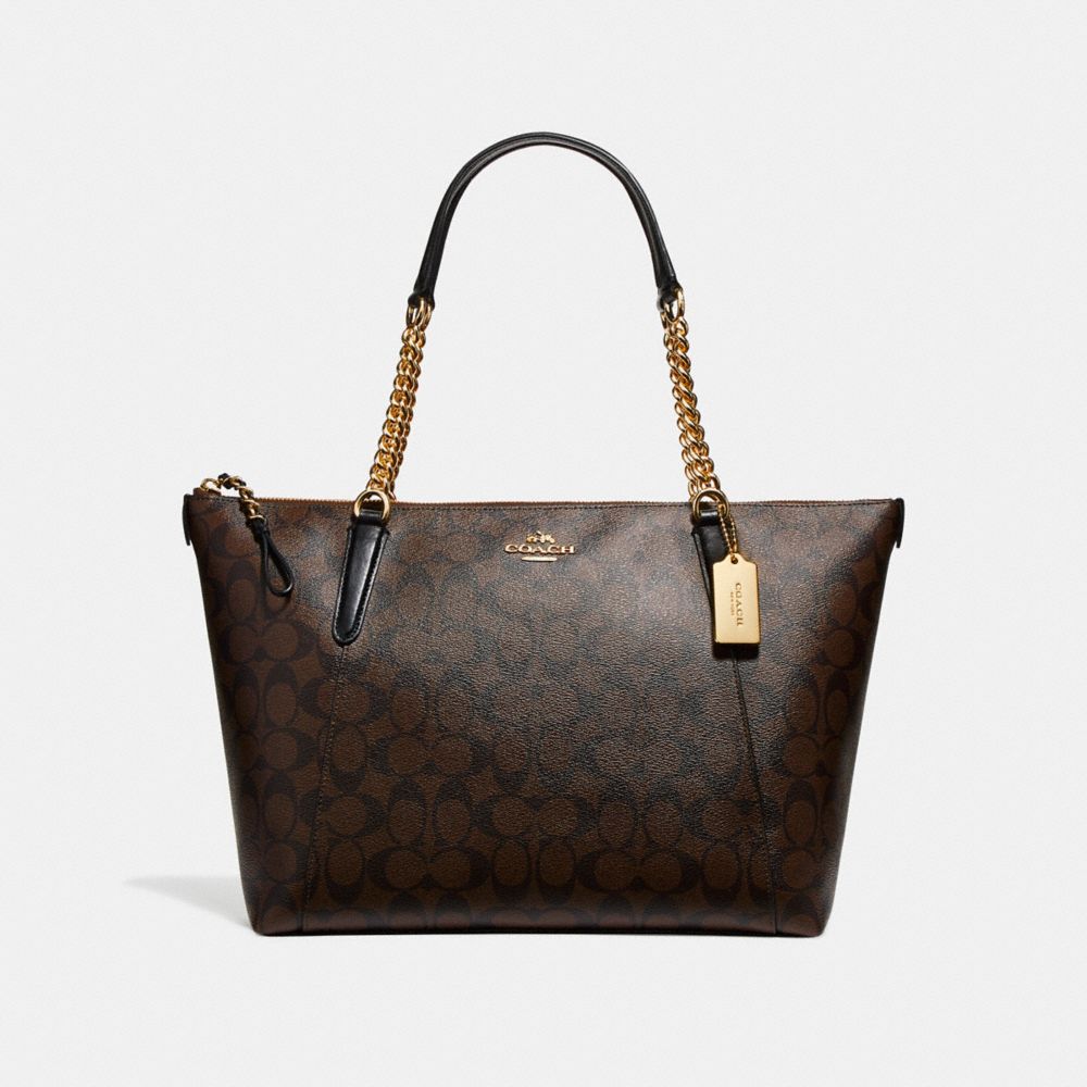 8. COACH f58846 - CITY ZIP TOTE IN CROSSGRAIN LEATHER - IMITATION GOLD/BLACK