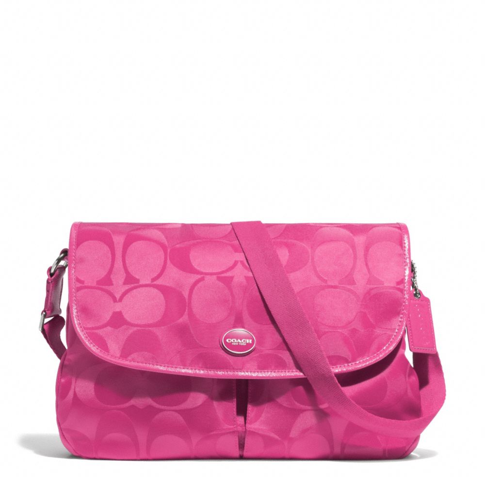 COACH F77490 SIGNATURE NYLON MESSENGER SILVER/HOT-PINK HANDBAGS