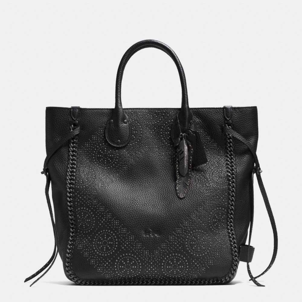 COACH F33938 - TATUM STUDDED TALL TOTE IN PEBBLE LEATHER - BNBLK - HANDBAGS