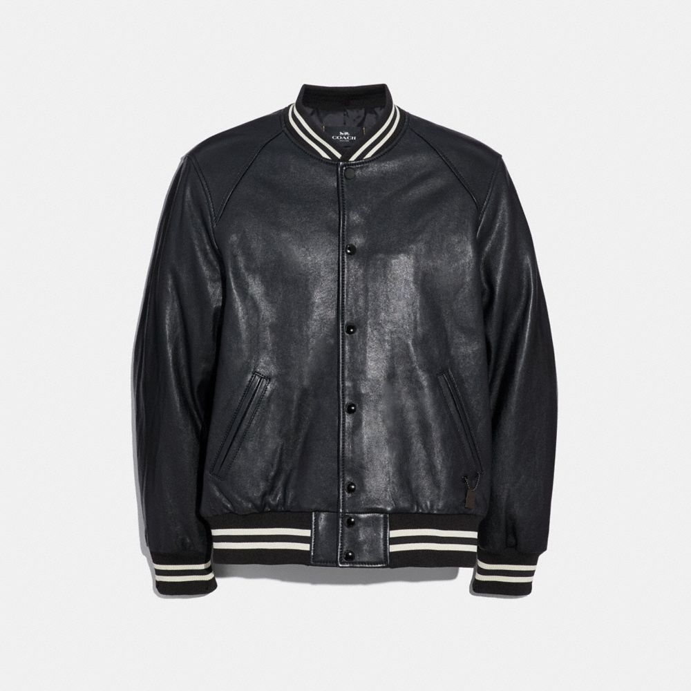 COACH F33784 - LEATHER VARSITY JACKET - BLACK - MEN