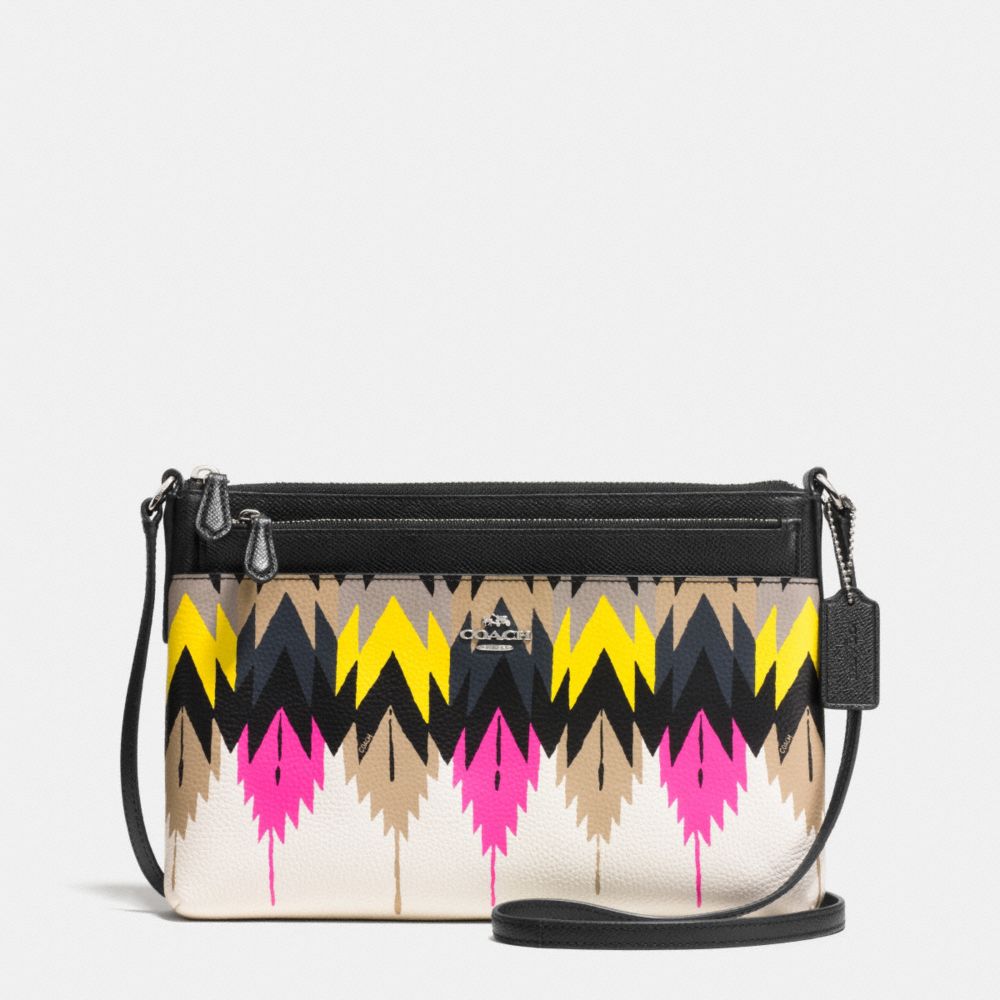 COACH F36274 SWINGPACK WITH POP-UP POUCH IN PRINTED CROSSGRAIN LEATHER SILVER/HAWK-FEATHER