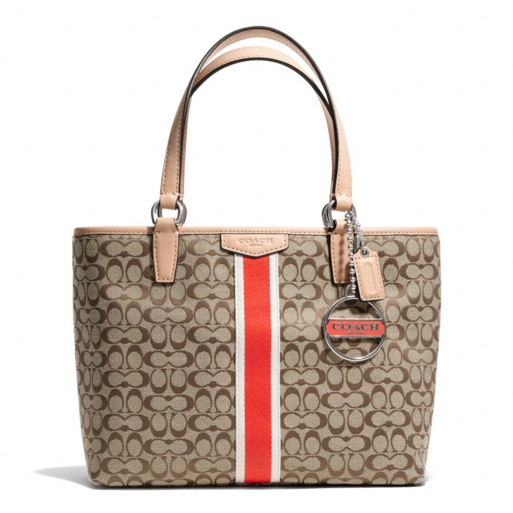 COACH F50649 SIGNATURE STRIPE 6CM TOP HANDLE TOTE ONE-COLOR
